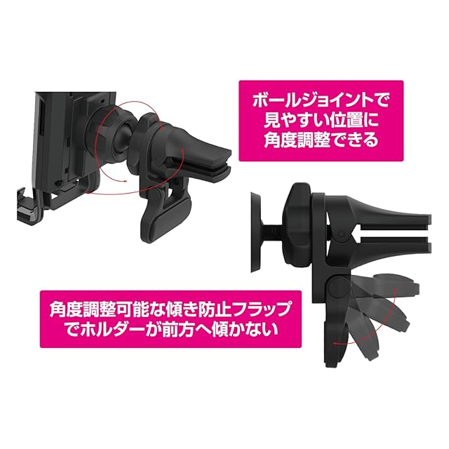 スマホのホールド/取り出しは片手で簡単に行えます。設置する場所にあわせて、ボールジョイントで角度調整が可能です。