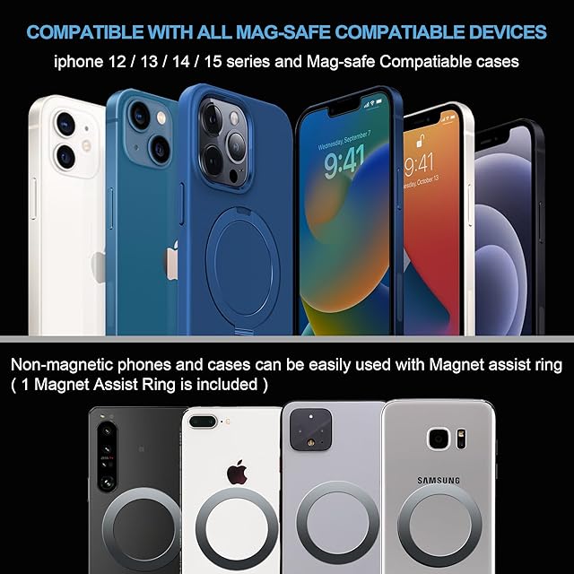 LUNES スマホホルダー 車 Magsafe対応 車載スマホホルダー マグネット 搭載 360度回転 車 スマホスタンド 超強磁力 車載 magnetic car mount iphone スマホホルダー スマホスタンド 車 携帯ホルダー 15 / 14 / 13 / 12 シリーズ 対応 (Round)