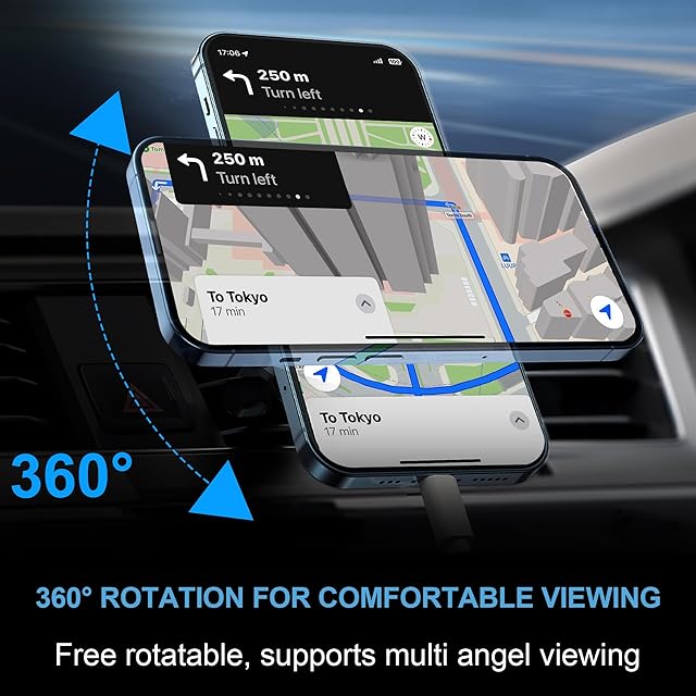 [360度自由回転&片手操作] 360度回転できる スマホホルダー 車 はUniversal 17mmボールジョイントを採用しています。縦・横・上下・左右など、お好みやニーズに合わせて、車 スマホスタンド を最適な視野角に調整が可能です。