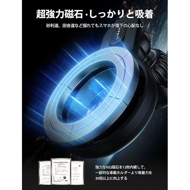 【20倍強い磁力&24つN52】スマホホルダー マグネットは、オリジナルのN52マグネット12個から、新たにN52マグネット24個にアップグレード。 これにより、スマホホルダー マグネットは通常のN48マグネットより99%強力になります。 平らなプレートを置いても揺れず、落ちません。
