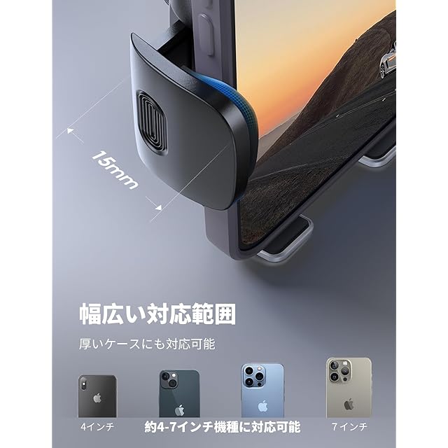 【⭐厚いケース対応❗❗・対応機種】スマホに接触する面サイズ:65*105mm、クリップのサイズ:15*39mm、フックの寸法:15mm、約4-7インチ機種に対応可能。手帳型ケース、Magsafe対応ケース、リング付きなど厚みのあるケースをつけたままでも安定感がしっかりあります。ご注意❗:手帳型ケースの厚さは15mmを超えると、対応できないことは予めご了承ください。保護ケースをつけたままに製品をご利用になる方が、ご購入になる前に是非機体全体の厚さをご確認ください。iPhone 16,16Plus,16pro,16pro max,iPhone15/14 plus pro promax 13 mini iPhone 12 11 XS XR X 8 plus 7 6s 6 5 5s se3 第三世代, Galaxy, Xiaomi Redmi Note 8 9 10 pro mini, huawei p20 p30 lite, Xperia S3 S4 S5 S6 S7, S8 S7 S6, Note 6 5, LG, androidなど。