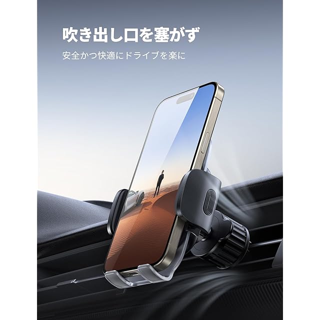 【金属製フック・ワンタッチ】スマホホルダー 車 吹き出し口 Lamicall アクリル バネ 式 フック エアコン 固定 車載 スマホ スタンド 送風口 ルーバー 自動車 携帯 片手操作 ワンタッチ 伸縮アーム 360度回転 iPhone 16/16Plus/16pro/16pro max/iPhone15/14/13/12 mini android