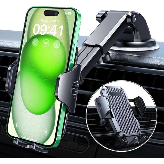 【超強力の真空粘着ゲル吸盤・30KG耐荷重・3M吸盤シート付き】弊社の車載スマホホルダーは最新改良された超強力真空粘着ゲル吸盤を採用、3M吸盤シートも付き、吸着力が倍増し、ダッシュボードや窓など平らな場所でも取り付けられます、車の表面の革を傷つけず、跡も残らないです。また、携帯ホルダー車の吸盤には耐熱性と耐寒性がある素材を使用しており、暑い時や極寒時で外れやすい問題を有効的に防ぎます。更に、吸盤が汚れにより吸引力が弱くなった場合でも、水洗い後に乾燥させることで吸着力を復元できます。