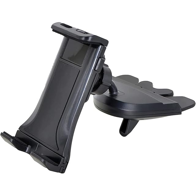 【使用方法】自動車のCDスロットに取り付けるタイプの車載ホルダーで、お使いのタブレットやスマートフォンを固定できるスタンドです。 落下防止のロック機能でホルダーをCDスロットにしっかりと固定できるため、運転中のブレーキや険しい山道で揺れや振動があっても影響しにくい設計となっております。 ジョイント部分が360度自由自在なので角度調整が簡単に行うことができ、スマートフォンを縦置きでも横置きでもご利用いただけますので、ナビやほかのアプリを安全に操作する時に便利です。 また、クッションのあるグリップでタブレットを固定するので傷をつける心配がありません。GPSナビゲーションなどを見るのに是非お試しください。 取り付けにはCDスロット上部に2cm、下部に4cmのスペースが必要です。 差し込みに問題がある時は上下逆向きでの装着をお試し下さい。