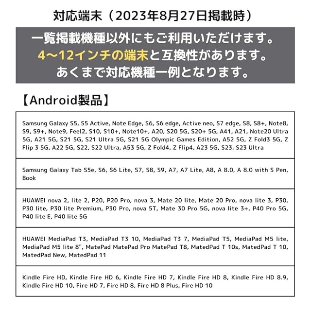 【対応機種】 iPad Pro 11 10.5 9.7 iPad Air10.5 2 iPad Mini 5 4 3 2 iPad10.2 9.7 iPad 6th 5th 4th 3th Gen Galaxy Tab A / E / S2 / S3 / S4 / S5e / S6 GalaxyNote 10 Note9 8 Galaxy S7 S7edge S6 S6edge S8 S8プラス S9 S9プラス S10 S10e S10+ GalaxyA6s A9s A9 A8s A80 A70 A60 A40s M30s GalaxyTab A10.1 10.5 9.7 8.0 GalaxyTabS 8.0 9.7 TabS4 GooglePixel 4XL 4 Google Pixel 3XL 3 AQUOS R3 Xperia XZ3 XZ2 HUAWEI Mate 20Pro P30Pro Switch iPhone5 5S 6 6S 7 8 X XS XSMAX 11 12 12mini SE 13 13mini 13Pro 13Pro Max、他