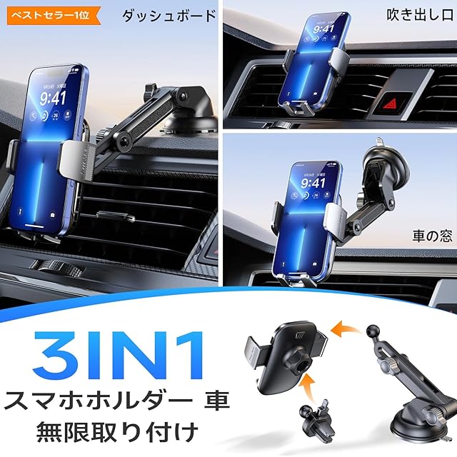 【独創的な3段クリップ式·愛車を傷つけない安定性】 当社のスマホホルダー吸盤には、3段クリップも付属しており、ダッシュボードと車のガラスや吹き出し口など、運転のクセに合わせて使い分けができます。従来のスマホ スタンド車載フック式と比べて、革新的なクリップは、99%の車のベントブレードに対応します。カード1枚分の厚みでも、決して揺らない、落ちない、異音も出さないことを保証しています。スマホスタンド 車のエアベントクリップは航空機用ステンレスと高品質のシリコンパッドを採用しており、摩擦・衝撃吸収性、耐スリップ性を向上耐久性がより10倍強化し、車の吹き出し口に傷をつけないのはもちろん、経年変化でクリップが折れてしまう問題も解決します。運転中のデコボコ道や急ブレーキでも、ホルダーやスマホが落下する可能性は0%です。