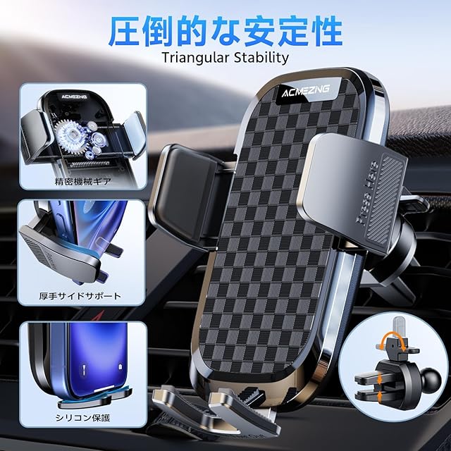 【2in1スマホホルダー 車・安定感抜群】史上に前例のない組み合わせが新登場!ACMEZINGは何千件のアンケート調査、TOP100製品の問題を解析により、日本の運転者に最も適したフック式+粘着ゲル吸盤型車載ホルダーを開発しました。従来のエアコン吹き出し口クリップ式とは異なり、超強力ステンレス鋼製のフック式スマホホルダーはより安定し、あらゆる車で手元に近づけた操作が可能です。さらに、弊社の車用スマホホルダー吸着盤には特殊なゲルを採用、抜群な吸着力でダッシュボード、フロントガラスにしっかりと固定、オフロードでも落ちません。ご注意:カー用品 スマホホルダーはワイヤレス充電を搭載していないため、充電にはケーブルの接続が必要です。