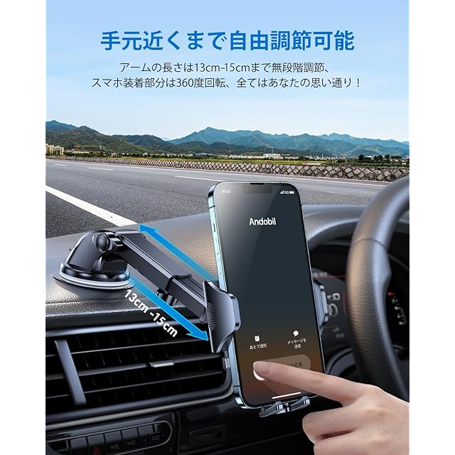【2025年進化】Andobil スマホホルダー 車 スマホスタンド 車 【安定性アップ】車載ホルダー 2in1 粘着ゲル吸盤&送風口兼用 全車種対応 すまほほるだー 車 手帳型ケース対応 片手操作 携帯ホルダー 車 取付簡単 スマホ ホルダー 360度回転 伸縮アーム iPhone SE 16 15 14 13 12 Pro Max Xperia AQUOSなど全機種対応 日本語説明書付き