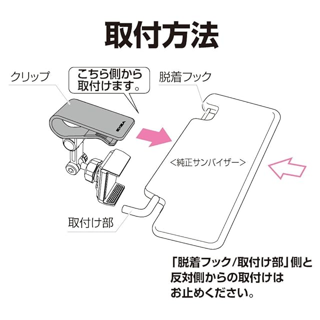 純正サンバイザーにクリップで取付けるスマートフォンホルダー