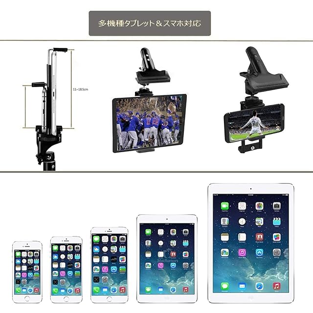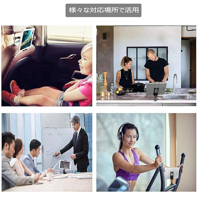【スマホ対応&多機種タブレット】:スマホからタブレットまでと対応サイズの幅が広いタブレットホルダー。スマホは横幅の5.6cm?9cmのiPhone/ Sony /Kyocera /SAMSUNG/HuaWei/Fujitsu など幅広い機種に対応できます。スマホに対応だけではなく、カーナビ tablet, ipad, ipadmini, iphone, kindle fire hd 等のいろいろなモニターも使用可能です。