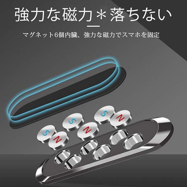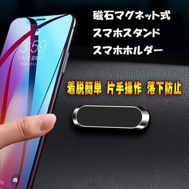 商品特徴:<br>「強力な磁力」6個マグネット内蔵、スマホをしっかり固定します。<br>「コンパクト」超ミニサイズ、車のスペースを有効活用できます。<br>「取付簡単」ネジ使わず、付属の両面テープで固定するだけ(テープ痕残らない)<br>「使い道多い」車、お風呂、冷蔵庫、壁、玄関、キッチンなどあらゆる平らな表面に使用可能<br>「ほとんどのスマホ対応」4インチ~7インチのスマホ使用可能<br>付属の金属板をデバイス側に貼り付けることで、ホルダーに内蔵されたマグネットが強力に吸着固定します。<br>※ご提示:iPhoneの場合、付属の鉄片をiPhoneとケースの間に固定してご利用ください。鉄片ご利用の際、スマホケースの厚さは2mm以内でお勧めで御座います。<br><br>商品仕様:<br>カラー:ブラック<br>重量:約25g<br>サイズ:約70*20*4mm<br>セット内容:マグネットスタンドX1、丸型鉄片X1、四角鉄片X1<br><br>◇注意事項<br>※出品物はスタンドのみとなり、その他のものは付属しません<br>※日本語説明書等の付属付属品はございません。また使用方法等についてのサポートはいたしかねます。