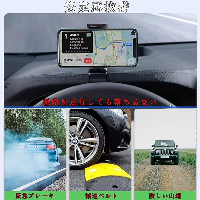【新改良のクリップ式車載ホルダー】視野を確保:運転中に視界をそらす必要がないため、GPSを使用したり話したりするときに無制限の視野を確保できます。より安全な運転: 頭を下げて運転することは禁止されています,ダッシュボードのスマホホルダーはドライバーの視界の前にあります。快適で安全な視界を確保することが可能で、安心した運転をサポートします。