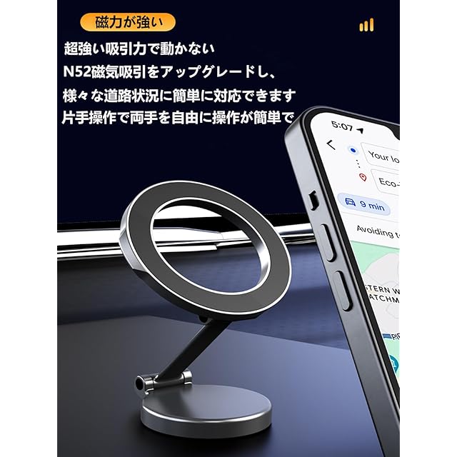 【変形状態が多種・様々なニーズに対応可能】2023年最新アップグレード 人気のスマホ 車用 ホルダー登場!従来のクリップ式の車載mag-safe スタンドと異なり、こちらの使用方法が非常に便利で、片手だけで操作できます。お好みや習慣によりmagasafeスタンドを取り付け可能。車載スマホホルダーの伸縮、折り畳み、360度回転可能の特徴を利用し、スタンドが見やすいところに調節可能。メーター、センターコンソールやナビの画面の後ろに貼り付け可能。また、オフィスの机、更に浴室にも貼り付けることができます。