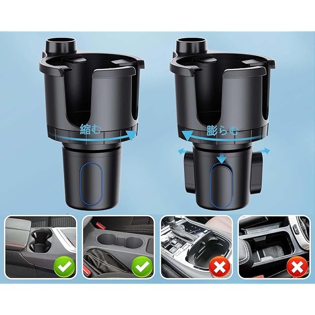 【インストールが簡単】カップホルダーのつまみを車やトラックのカップホルダーに合わせて調整します。車の電話ホルダーの背面にある調整ボタンを使用すると、幅を簡単に調整できます。カップホルダーとしてだけでなく、スマートフォンホルダーとしてもお使いいただけます。 用途が広く、とても便利です。