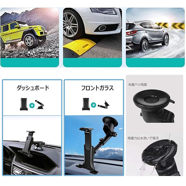 【強力な粘着ゲル吸盤】高品質のゲル吸盤で、多少凹凸のあるところにしっかり固定できるようになりました、または車内に跡が残ることはない!運転中、落ちる心配もありません。