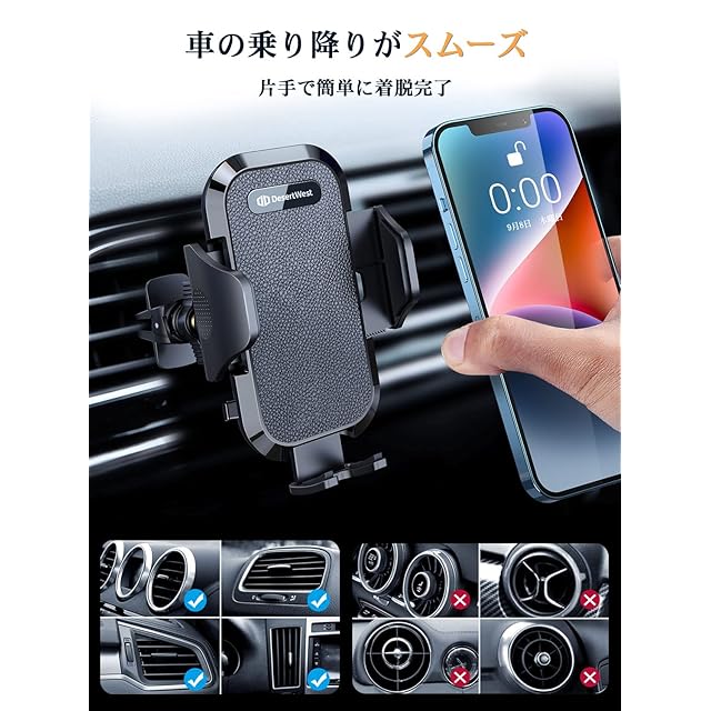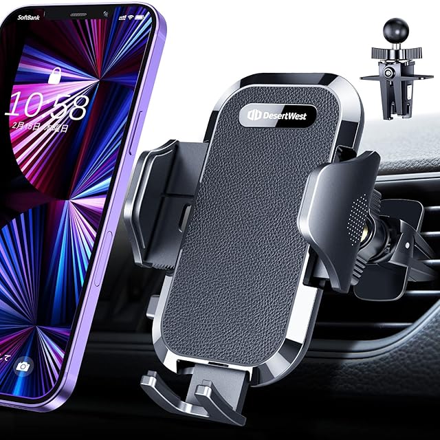 【2024年最強の安定感】DesertWest スマホホルダー 車 【改良クリップ】エアコン吹き出し口 車 スマホスタンド 取付簡単 車載ホルダー 片手操作 手帳型ケース対応 携帯ホルダー 360度調整 横向き スマホ ホルダー 車載 エアコンiPhone 15/Xperia AQUOS arrowsなど4-7インチ全機種対応