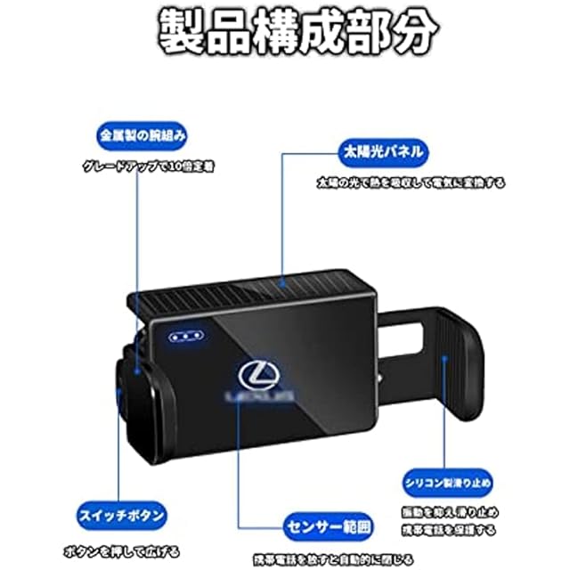 スマホホルダー 車載ホルダー スマホスタンド 太陽光エネルギー電力貯蔵 type-cケーブル超高速充電