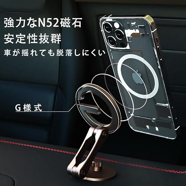 Kwak's 車載ホルダー 車 スマホ ホルダー Mag-safe スマホホルダー 車 マグネット 車載 携帯ホルダー 車内 スマホスタンド スタンド 携帯 安定性 360度回転 磁気吸着 片手操作便利 取り付け簡単