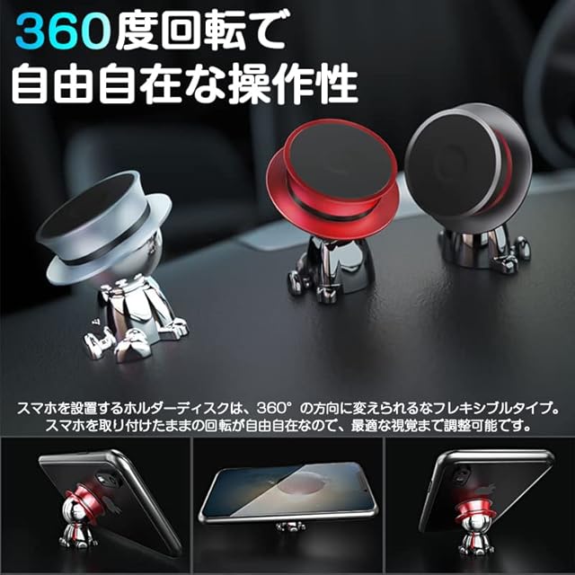 車載スマホホルダー 車用スマホスタンド 携帯ホルダー マグネット 360度回転 可愛い スマホホルダー 車 高級合金素材 スマホスタンド (ブラック)