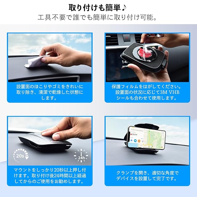 ✅【簡単すぎる取り付け】日本語説明書を用意していますが説明書が必要ないぐらい取り付けが簡単です。強力粘着吸盤または3M製の強粘着パッドを使用して、希望の場所に設置するだけですぐに使い始められます。