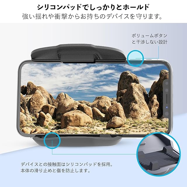 ✅【安心の耐久性】上下に採用されたシリコンパッドがデバイスをしっかりホールド。アメリカの悪路を想定した設計と厳しいテストをクリアしているため、運転の振動でホルダーやスマホが落下してしまう可能性はほとんどありません。