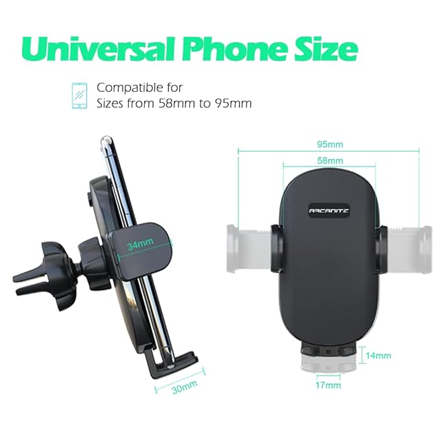 アルカナイト(ARCANITE) 車載用携帯電話ホルダー 車載スマホホルダー エアコン 吹き出し口 車載用スマホ 固定 スタンド 送風口 ルーバー 車内アイフォン置き Car vent phone holder 安定性拔群 自由調節 360度回転 各種スマホ対応 取付簡単 ブラック AKCM03