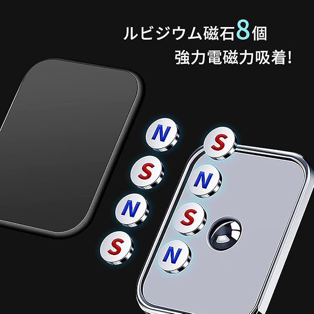 【超強力マグネット&落下防止】 本製品は八つの超強力マグネットを内蔵し、スマホとの接触面積を広げる同時に、磁力も大幅にアップします。強力な磁力により、スマホ自体の重さや車の揺れ幅、ブレーキなどで落下することは心配無用です。また、材質が優秀なマグネットの寿命も長く、磁力は急速に衰えず、長持ち使用が可能です。 【耐久性&実用性】 折りたたみ式で使用範囲が広く、新たな兼用性デザインにより、スマホホルダーは市販のあらゆるスマホやケースに適用でありながら、iPhone/Sony/Samsung/Xperiaなどの多機種にも対応でき、4-7インチ全サイズの機種が使用できます。なお、Magsafeにも対応可能ですので、iPhone12/13/14/15/Plus/PRO/PRO MAX/Miniの方には、直接的に使用でき、マグネットシートの着用も不要で、非常に便利でございます。また、閉回路磁場設計により、スマートフォンの電波に影響与えません。額縁なしの設計で充電に影響なし。運転中で視線がお遮らえ心配はありません、片手で操作可能ですので、より安全な運転環境を作り上げます。 【安定性抜群&調整可能】 ダブル・ボールジョイント構造を導入され、360度回転でき、水平や垂直方向での自由調整も可能で、お客様の身長や運転習慣に合わせて、お好みの使用角度を自由に設定しましょう。また、優れた金属材料で作られたスマホホルダーは変形にくく、耐高温塗装も施しされ、夏の車内高温にも脱落しませんし、多重固定の設計により、自由度が高い同時に、安定性にも優れています。 【高級合金素材&おしゃれなデザイン】 高光沢アルミニウム合金素材で作られ、高級感を生み出し、キラキラな金属外観でありながら、おしゃれな雰囲気があります。アルミニウム合金により、酸化防止塗装を施しされ、輝く外観を維持することが可能です。 【取り付け簡単&外し痕跡なし】 スマホホルダーに付属したマグネットシートを貼り付けば完成です、余裕で簡単で工具も不要です。また、特製なホルダーシートにより、取り外しときは、跡が残りにくく、ご愛車に傷を付けません。
