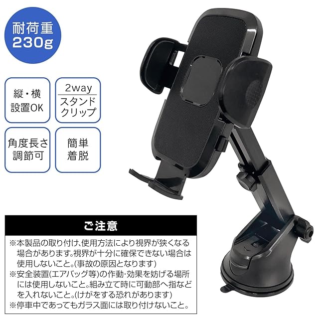 Comolife スマホホルダー 車載 2in1 粘着ゲル吸盤 エアコンクリップ 360度回転 長さ調節可能 角度調節可能 スマホスタンド 車載ホルダー スマートフォンスタンド スマホ用スタンド 車 スマホ スタンド 携帯ホルダー 2way カー用品