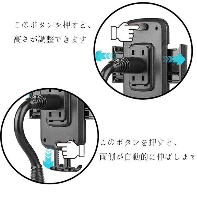 【角度が調整可能】頑丈なアームで自由に曲げと固定ができます(スタンドの最大高さは28cm)。ジョイント部も 360°回転可能と設計されて、適合な角度に手軽に調整でき、最大限の柔軟性と利便性を提供します。長さと360度のスイベルブラケットに柔軟に調整できるため、運転中に携帯電話を見るのに最適な角度を実現できます。 話したり、ナビゲートしたり、音楽を聴いたり、充電したりしても、スタンドは安全な運転を保証します。