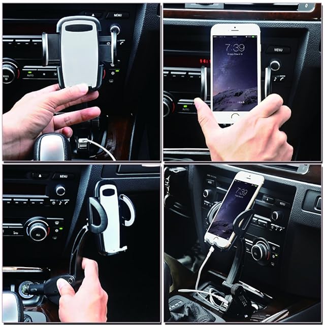 DELAM 車載ホルダー オートホールド式 シガーソケット付き携帯スタンド USBポートx2 スマホホルダー 360度回転可能 出力5V3A GPSスタンド iphone/Sony Xperia/Samsung Galaxy/Huawei/ASUS zenfone/Google Nexus/HTCスマートフォン対応 ブラック+グレー