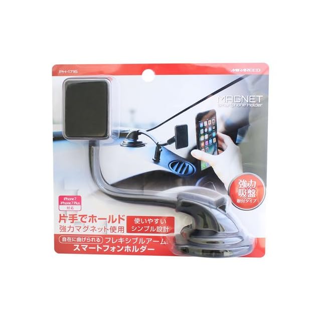 ミラリード スマートフォンホルダー マグネットフレキシブルホルダー(吸盤取付) BK 汎用 PH-1716