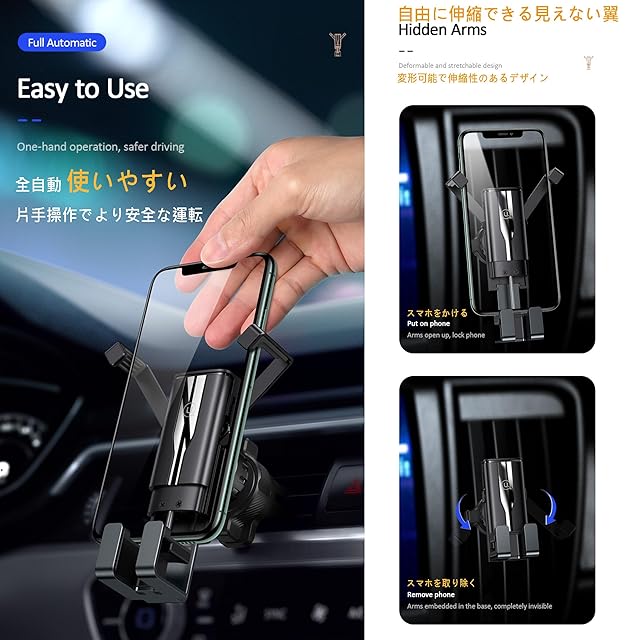 スマホホルダー 車 車載ホルダー 片手操作 自由調整 スマホホルダー マニュアルケース 車載ホルダー カーアクセサリー 重力式 エアコン吹き出し口 片手操作 4-7インチ全機種対応