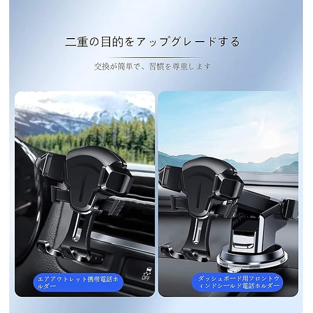★【安定性満点、お愛機を全面保護する】スマートフォンホルダー安定性満点の秘密:①革新的な真空ゲル吸盤を採用、従来型の吸盤より10倍以上の粘着性を持ち、市場で安定性のNO.1の車用ホルダーを成就します。②業界独創な吹き出し口用3段階クリップを開発、精密な工序で鍛造されたクリップは安定性・耐久性20倍アップします。③伝統のギア設計を転覆し、高精密なギアーセット連動技術を使用、ホルダーアームの故障率を1/1000まで下げます。 ★【国際化の独自設計、高級で上等】車載スマホホルダーは国際で有名なデザイナーで設計され、独自の設計特許を持って、製品の唯一無二を保証できます。(特許NO.:006590790-0003)①裏面に設計されたリリースボタン:人間工程学に基づいて、スマホの取り外しはもっと便利になる上に、側ボタンで指を割れるリスクを避けます。②もっと広いボトムブラケットのスペース:スマホの充電口を塞ぎません。