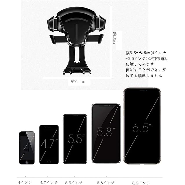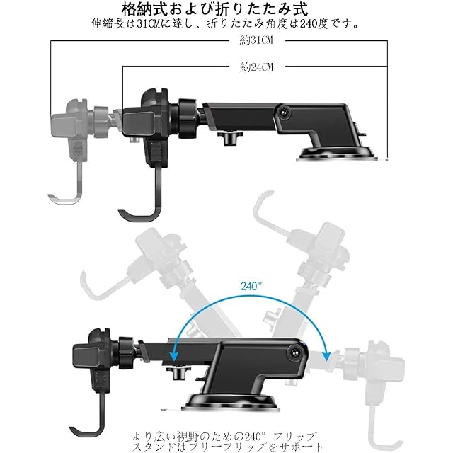 ★【安定性満点、お愛機を全面保護する】スマートフォンホルダー安定性満点の秘密:①革新的な真空ゲル吸盤を採用、従来型の吸盤より10倍以上の粘着性を持ち、市場で安定性のNO.1の車用ホルダーを成就します。②業界独創な吹き出し口用3段階クリップを開発、精密な工序で鍛造されたクリップは安定性・耐久性20倍アップします。③伝統のギア設計を転覆し、高精密なギアーセット連動技術を使用、ホルダーアームの故障率を1/1000まで下げます。 ★【国際化の独自設計、高級で上等】車載スマホホルダーは国際で有名なデザイナーで設計され、独自の設計特許を持って、製品の唯一無二を保証できます。(特許NO.:006590790-0003)①裏面に設計されたリリースボタン:人間工程学に基づいて、スマホの取り外しはもっと便利になる上に、側ボタンで指を割れるリスクを避けます。②もっと広いボトムブラケットのスペース:スマホの充電口を塞ぎません。 ★【至高の高品質素材、安全で安心】①安全で耐温度の素材:-20℃〜90℃の温度に耐える材質は真夏でも安心に使えます。そして、無毒なくて環境に優しくて、人体にも自然にも悪影響を与えません。②市場でシリコン面積最大の携帯スマホほるだー:スマートフォンと車の接触面は全部高品質なシリコンゴムが付いて、赤ちゃんを保護するようにご愛機と愛車を守ります。運転中信頼できるパートナーです。そして、卓上用の携帯ホルダーとしても最適です。家族とのビディオー通話、アニメの鑑賞には便利です。 ★【ほぼ全種類スマホ&ケースに適用】iPhone 12 Pro Max / iPhone 12 Pro / iPhone 12 / iPhone 12 mini/ iPhone 11 / Xs / XR / X / 8 / 7 / 7 Plus / 6S / 6 / SE / 5S / 5C / 5 / 4S / 4 / Galaxy S10+ / S10 / S9 / S9+ / S8 / S7 / S6 / S6 それとOne Plus / Huawei / Google Pixelなど4.6-6.5インチあらゆる機種※(特別ご注意:SONY機種 Xperia 1 / Xperia 1 II / Xperia 5 / Xperia 5 II対応できない、購入前に是非ご注意ください)
