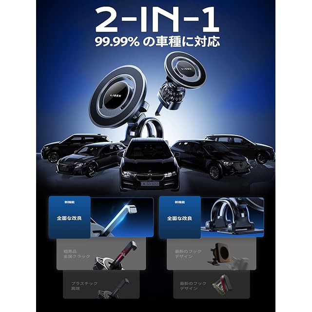【magsafe専用車載ホルダー】マグセーフ 車載はLISEN 研究所によって新たに開発され、2024 年に独占特許を取得しました。Magsafeテクノロジーとの完全な互換性を実現し、マグネット吸着式のスマートフォンホルダーとして優れた機能性を発揮します。簡単な取り付けと取り外しで、快適なカーライフをお楽しみいただけます。