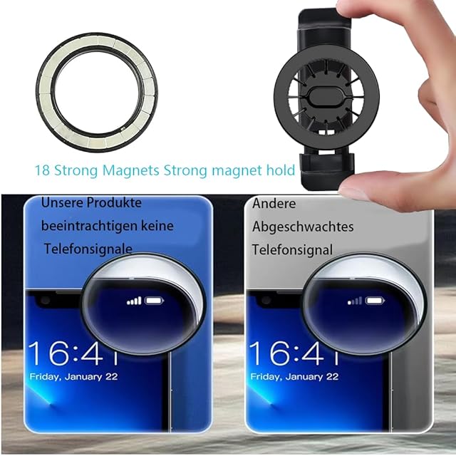 強力な磁気吸着力:このホルダーには、強力な磁石が付いており、激しい揺れでもスマートフォンをしっかりと保持し、落下やスリップを防ぎます。