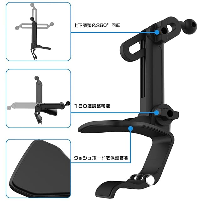 [360度回転ジョイント&180度調整アーム]インストルメント パネル ブラケットは、水平および垂直画面の 360° 任意の回転スイッチをサポートするだけでなく、アームは180° 調整できて最適な視野角を提供し、モバイルをはっきりと見ることができます, 視野角の制限のない電話画面で、安全に運転できます.