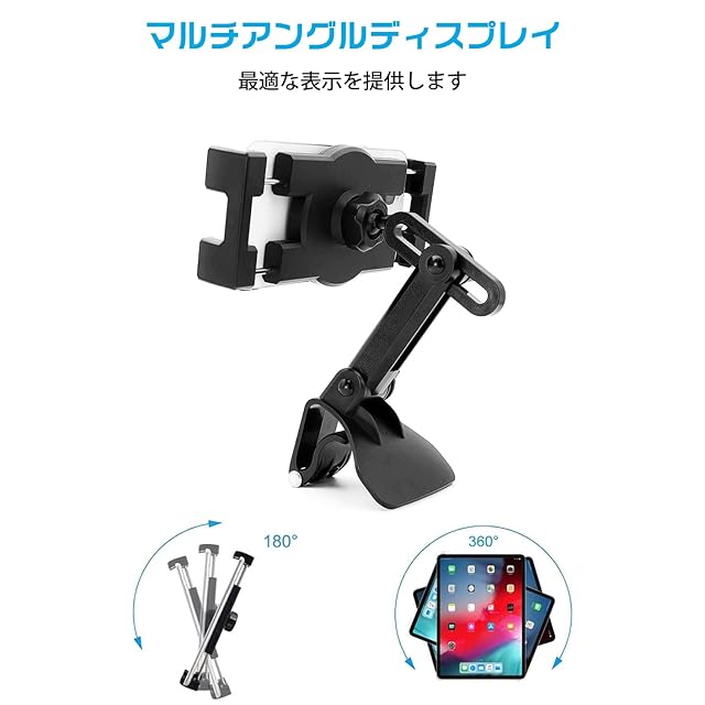 スマホ車載ホルダー クリップ式 携帯電話スタンド ダッシュボード/サンバイザー/バックミラー取り付 けスマートフォンマウントホルダー 安定性 伸縮可能 高さ調整可 4-12.9インチ機種対応