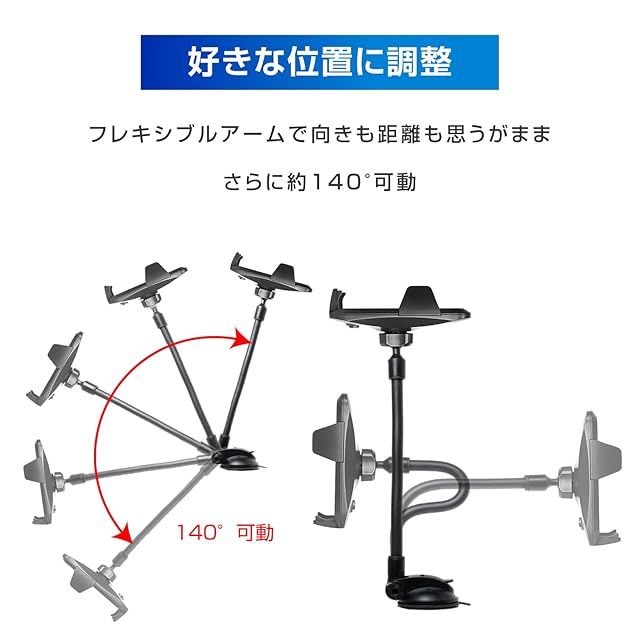 【シンプルで使いやすい】●スマホを固定するサイドアームは手帳型やリング付きの厚みにも対応。グリップの良いシリコンゴムでがっちり固定します。●片手で簡単。ホールド&リリース。スムーズなギアが品質の証。●アームは振動に強い頑丈なクネクネアームで自由に曲げらます。