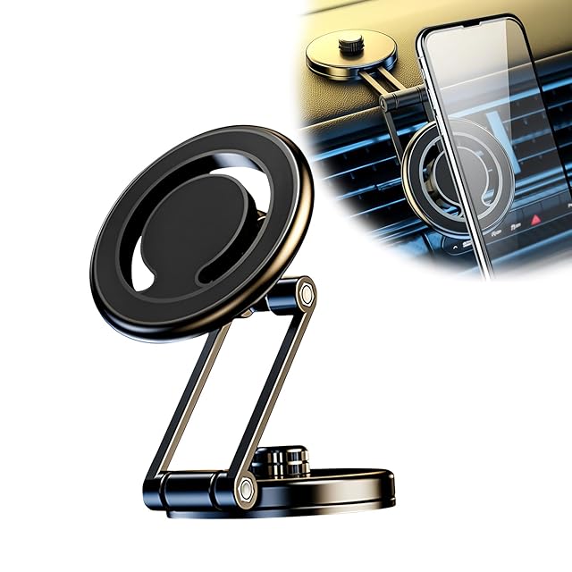 HiGropcore 車載ホルダー マグネット マグセーフ対応 車スマホホルダー 携帯ホルダー【超強磁力、360°調整可能、折りたたみ】 アルミ合金製 安定性 4~7インチ全機種対応 iPhone15/14/13/12 Pro Plus Max適用
