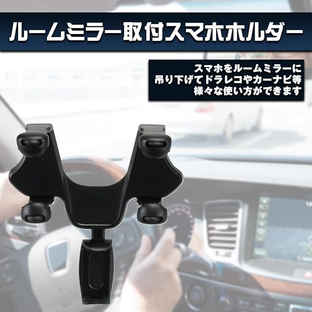 車のルームミラーに取り付けるだけ!お手持ちのスマートフォンがナビやドライブレコーダー代わりとしてお使い頂けます。※ナビなど専用のアプリをダウンロードしてからお使いください。