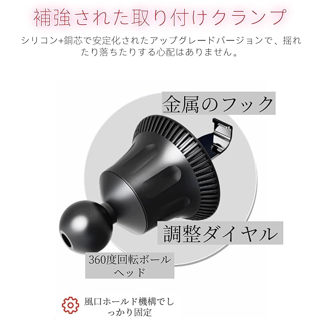 【⭐ 高品質な素材】銅コアとシリコーン素材の組み合わせです。シリコーンパッドの厚みが増し、滑り落ちを防ぎ、重い銅コアがしっかりとエアベントに固定され、落下しにくくなります。