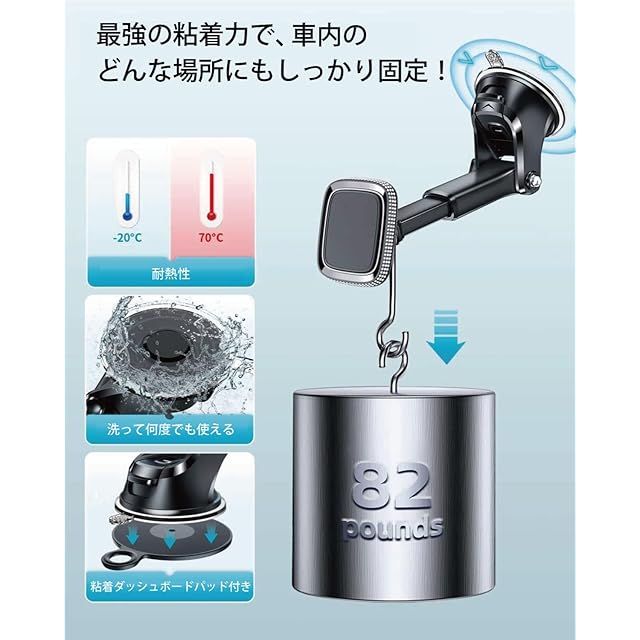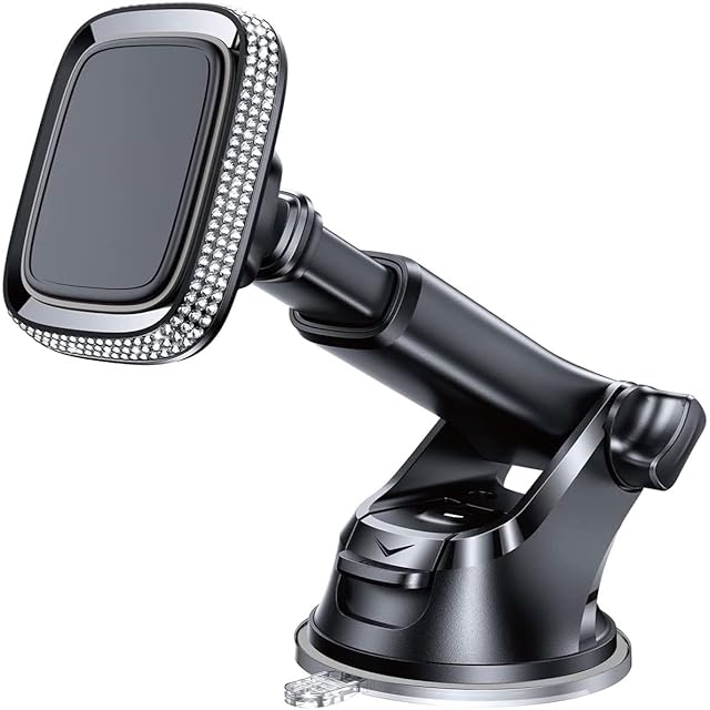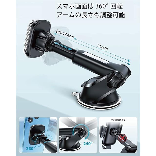 車用マグネット式スマホホルダー 車 車載ホルダー マグネット 【360度回転】 片手操作 多機種対応(ケース対応) (ロング クリスタル)