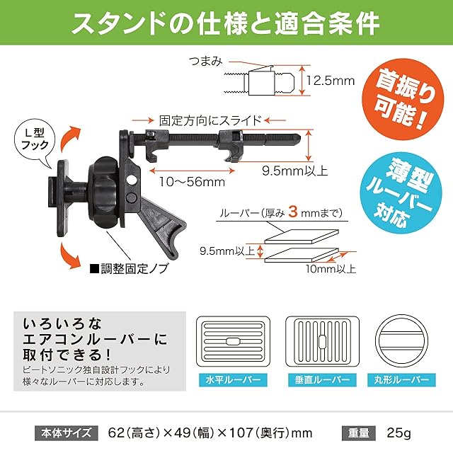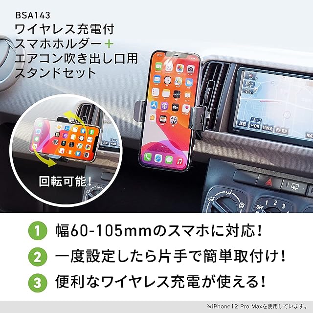 ビートソニック エアコン吹き出し口用スタンドセット 綺麗に確実に固定できる!車載ホルダー 携帯ホルダー iphone (BSA143 ワイヤレス充電ホルダーセット品)
