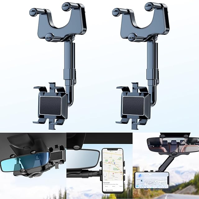 2パック 360°回転可能で格納式カーフォンホルダー、フォンケン 【新バージョン】 多機能バックミラー携帯電話ホルダー ユニバーサル携帯電話マウント 車用 バックミラーカーマウント すべてのスマートフォン用