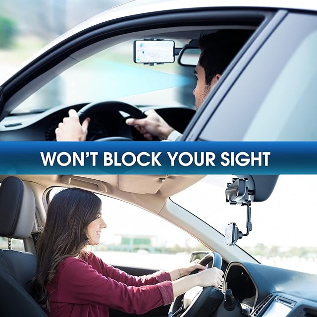 【視線を遮らない】FONKEN(フォンケン)の車用携帯電話マウントは、車のバックミラー用に設計されています。 調節可能な車用携帯電話ホルダーは、視線を水平に調整でき、道路から目を離さず、電話を見下ろしたり視界を遮ったりすることがなく、運転をより安全で快適にします。
