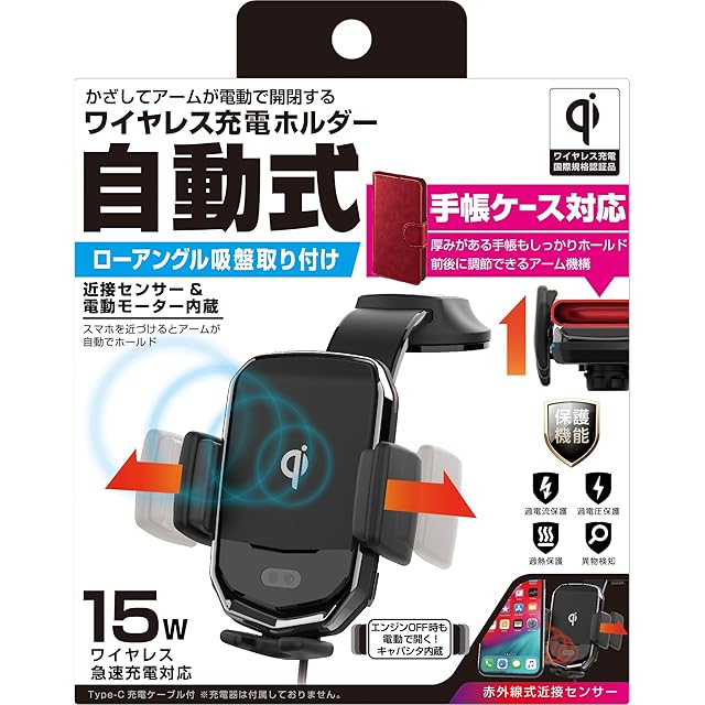 ワイヤレス充電機能、QI対応スマートフォン/iPhoneをホールドしながら充電できる (急速充電モードで最大15Wによる充電が可能)
