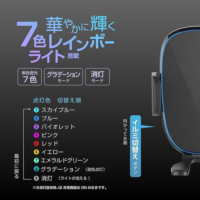 カシムラ 鮮やかに輝くイルミネーションライト搭載/Qiワイヤレス充電 自動開閉ホルダー NKW-39