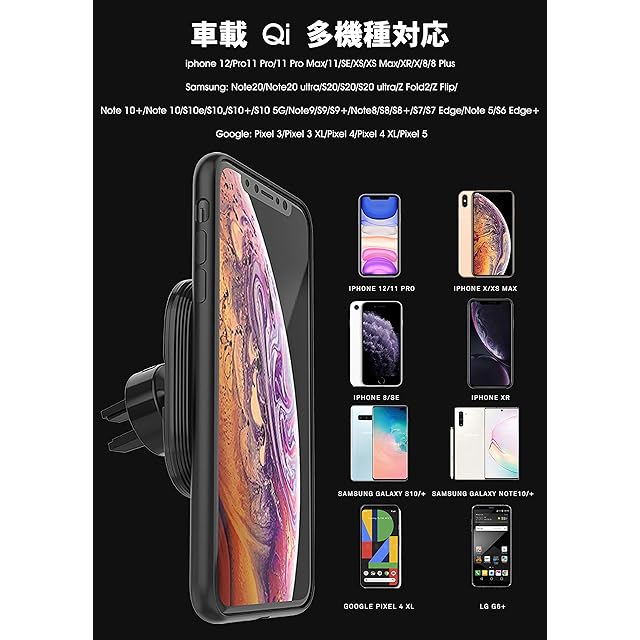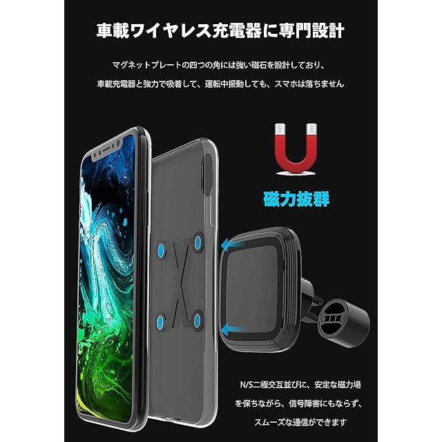 車載ホルダー マグネット 超強磁力 2in1 スマホホルダー 粘着ゲル吸盤&エアコン吹き出し口式兼用 スマホスタンド 車 携帯ホルダー iphone 車載ホルダー 取り付け簡単 360度回転 全機種対応 iPhone/Samsung/Sony/LG/Huawei など (ブラック)