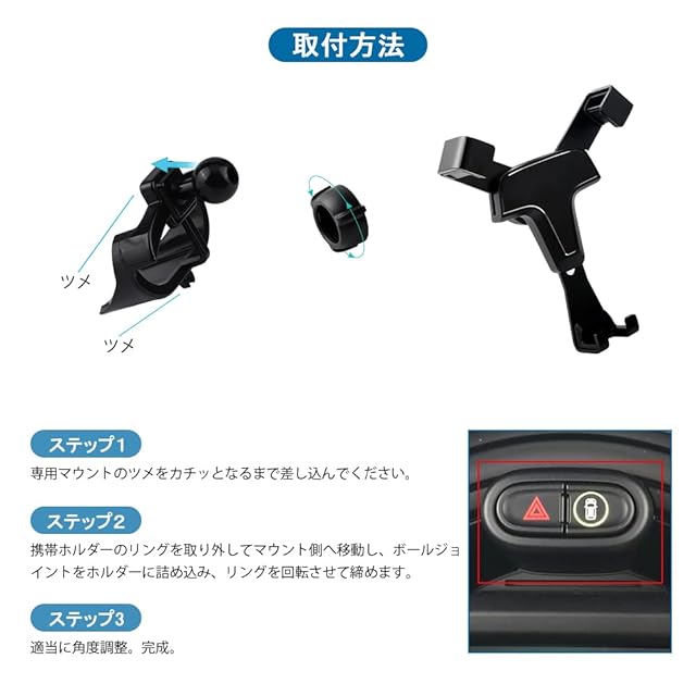 【適応車種】BMW ミニ F54 (2015-2020) / F55 (2014-2020) / F56 (2014-2020) / F57 (2016-2020) / F60 (2017-2019)専用のステー&車載ホルダーセットです。車種専用設計なので、フィッティングは良いです。(※年式やグレードにより、ハザードボタンの形状が異なる場合がございます。画像にて形状をよくご確認下さい。)